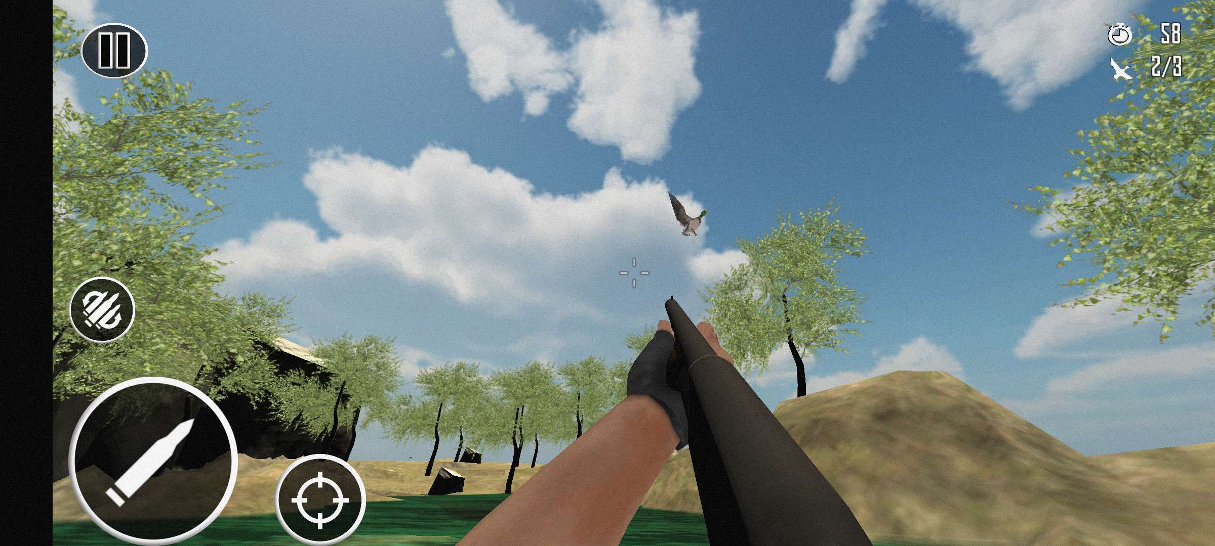猎鸭 - 射击游戏处于高潮,所以抓住猎枪去猎鸭。 为鸭子狩猎季节做好准备! 在美丽的环境中用猎枪尽可能多地射击鸭子,混合美丽的丛林鸟类和鸭子的声音。 感觉就像在现实的鸭子狩猎环境中。 如果您是一名优秀的射手并且可以接受挑战,那么这里就是您的最佳选择。 猎鸭射击游戏是一款第一人称射击游戏,拥有高效的武器控制和引人注目的图形和声音效果。 享受带有逼真动画的猎鸭射击游戏。 猎鸭射击游戏有两种有趣的模式。 解锁猎鸭射击游戏的第二种模式。