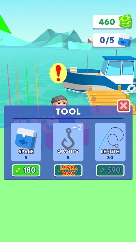 《渔夫Fisherman》让我们钓到很多鱼吧! 把钓到的鱼卖掉吧! 用你的钱来强化你的钓鱼设备,更高效地钓鱼!