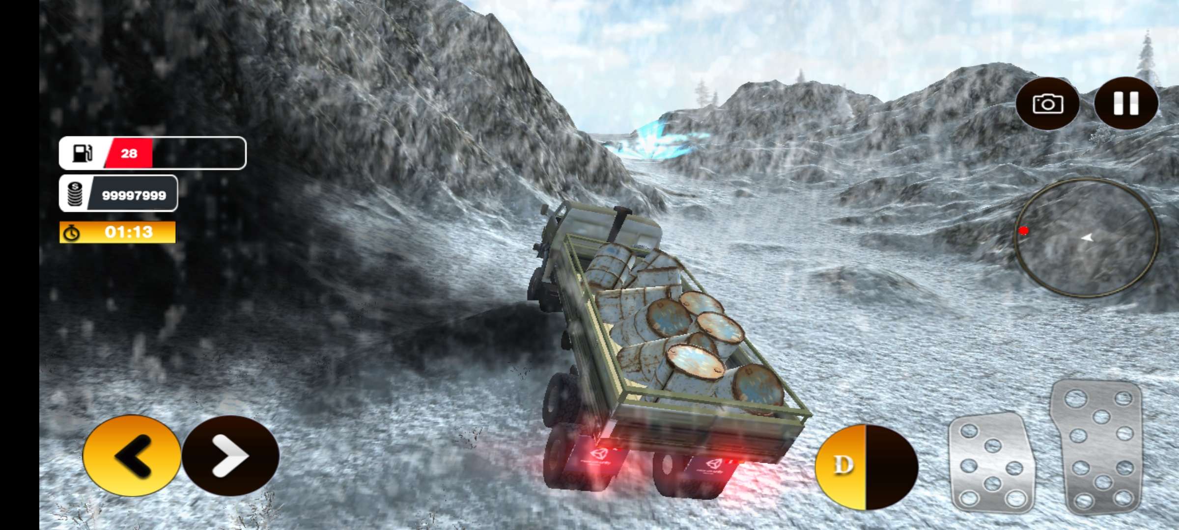 欢迎来到雪地卡车货运模拟器。 在这些白雪皑皑的致命山丘中,您必须将木箱和油箱等货物从一个地方运送到另一个地方。 您必须按时交付并密切关注您的时间和燃油表。 享受不同种类货运卡车的图形和环境,并完成您的所有任务。 每项任务的时间和燃料都是有限的,因此,请为这项挑战做好准备,像专业人士一样驾驶,无需失误或机动。 您的主要职责是将货物运送到正确的地方而不会造成任何损坏。 因此,在湿滑的雪山地区避免人员流动或跳跃,并在正确的时间和方式下交付工作。
