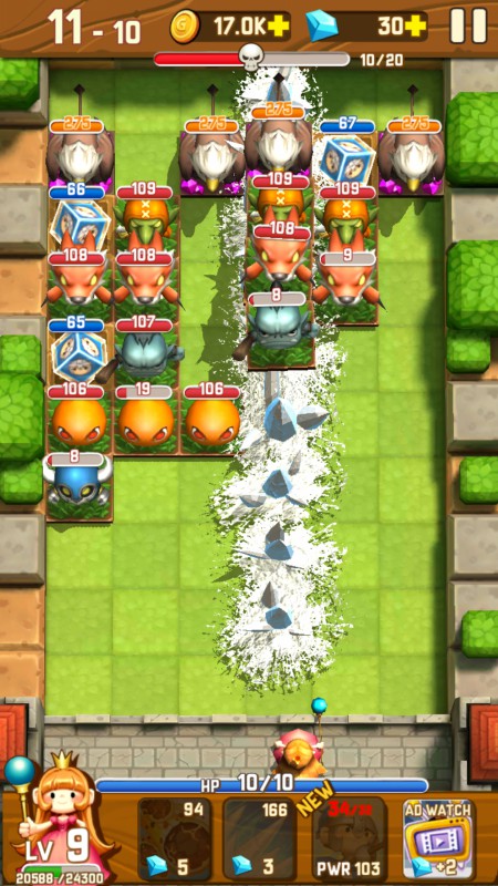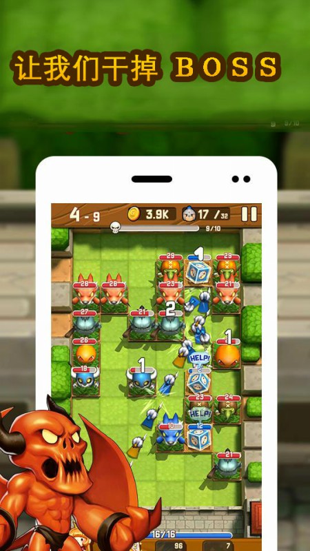 《粉碎怪兽英雄》是一款益智游戏。游戏中玩家需要发射自己的士兵来消灭入侵的怪兽。游戏里玩家扮演公主,在怪兽入侵的时候要发射出卫兵来保护自己,在入侵的怪兽中还夹杂着被俘的士兵,玩家可以解救士兵来增加自己实力。随着敌人的消灭,公主的等级、魔法和士兵上限都会得到提升。