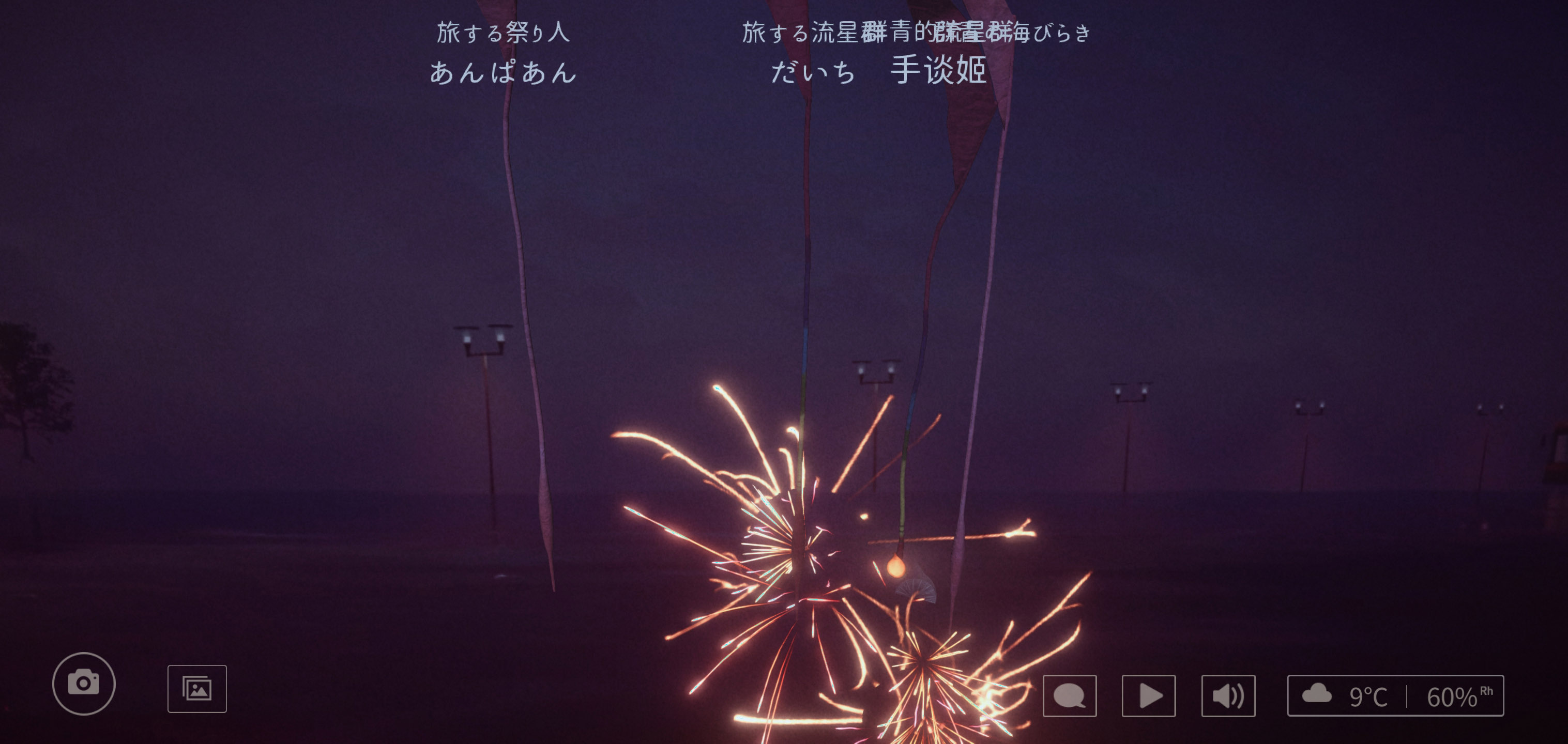 游戏的烟花会根据当时天气的不同而改变。
