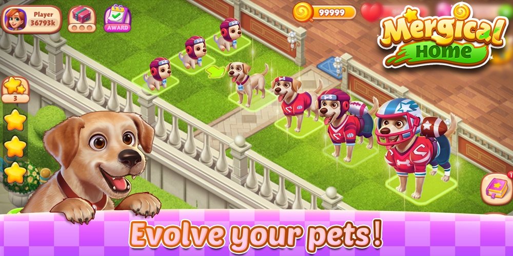 合并以解锁不同类型的小动物,每种生物都将带给您完全不同的体验,同时使您的豪宅更丰富多彩,更有趣。