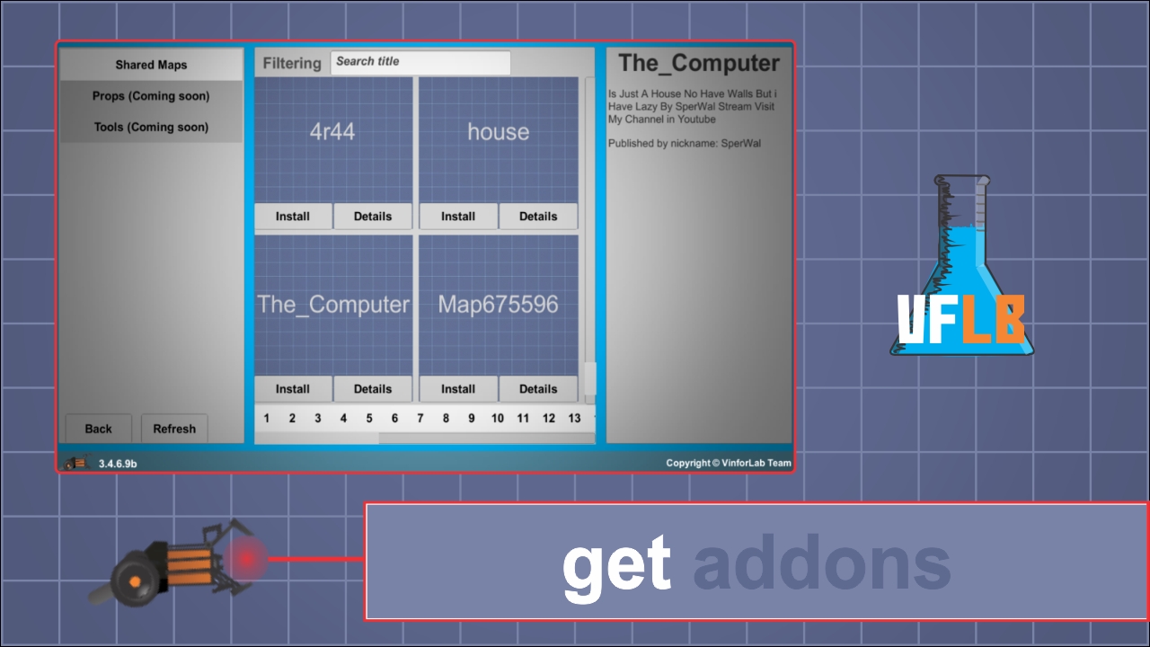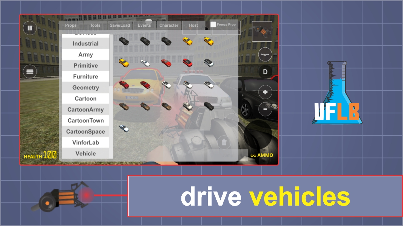在Vmod沙箱中,您可以使用各种物品和工具来建造结构,驾驶汽车,直升机并与朋友一起玩乐。