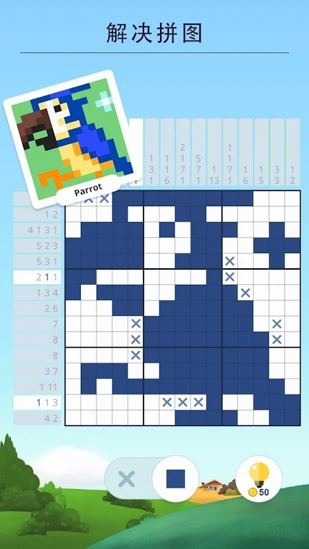 日式拼图是一幅图片,您只需遵循基本规则和一定的方法即可发现隐藏的图片。必须将题板填为方块或以X表示。侧边数字指导如何进行计算。从上到下读取每行的数字,从左到右读取每列的数字。根据数字,用正方形填充或用X进行标记。
