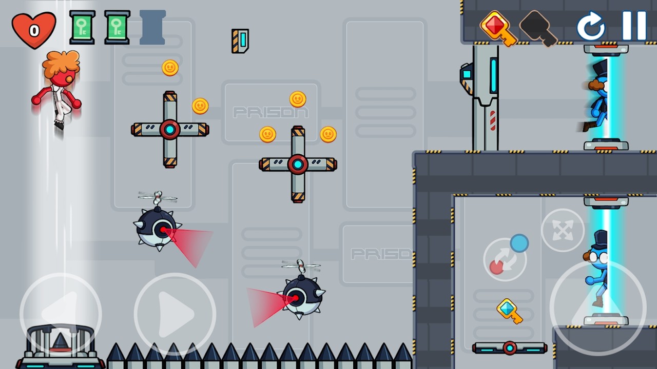 《红蓝火柴人监狱Red And Blue Stickman Prison》红蓝火柴人游戏迷的好消息。下一个版本的游戏已经正式推出。许多令人兴奋的新改进和挑战会让你上瘾,无法移开视线。 Stickman Red And Blue 是一款令人上瘾的益智游戏,您必须在其中体现这两个角色。同时控制两个火柴人并使用按钮移动、推箱子和收集硬币以在丛林中找到出口。 在一个美好的一天,红火柴人和蓝火柴人一起在森林里出去,他们不小心在迷宫中迷路了。这里有许多陷阱,必须克服它们才能回家。两个火柴人必须解决迷宫难题的许多任务。加入他们的冒险之旅,逃离森林并安全回家。 Red and Blue Stick 中最好的迷宫游戏、团队合作游戏和冒险游戏:Forest Temple Maze!与您的孩子或您的朋友一起玩会让人上瘾且非常有趣。与熔岩男孩和冰女孩共度美好时光!