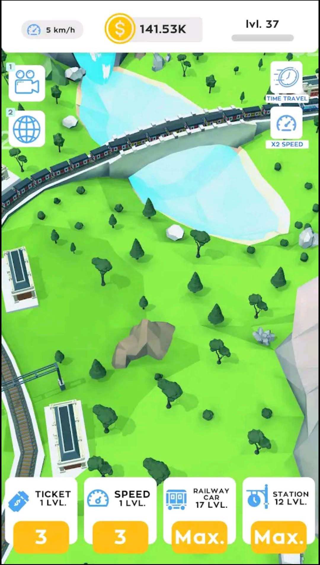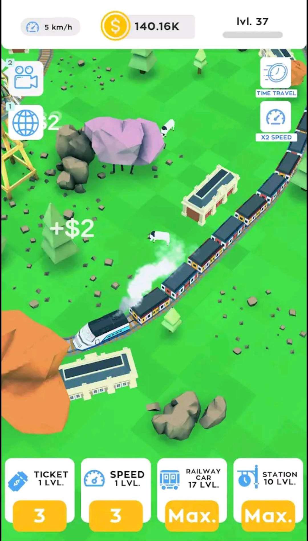 ÓÎÏ··¢ÉúÔÚÒ»¸ö¹ú¼ÒµÄµØÍ¼ÉÏ£¬ÒÔ»ð³µÕ¾ÎªÖÐÐÄ¡£Íæ¼ÒÒÔÉÙÁ¿×ʽðºÍÉý¼¶¿ªÊ¼£¬µ«¿ÉÒÔÉý¼¶³µÕ¾ÒÔÔö¼ÓÊÕÈë¡¢½âËøÐ»𳵡¢½¨Ôì¸ü¶à³µÕ¾²¢×¬È¡¸ü¶à½ðÇ®¡£