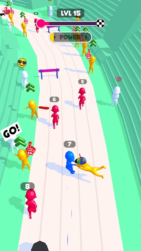 《马拉松跑Marathon Run》感觉像个马拉松选手! 你需要通过一切手段赢得比赛。从球迷人群中冲锋以加速,击倒对手,将观众扔向对手。 用你的手指来控制角色。简单直观。 玩赢!