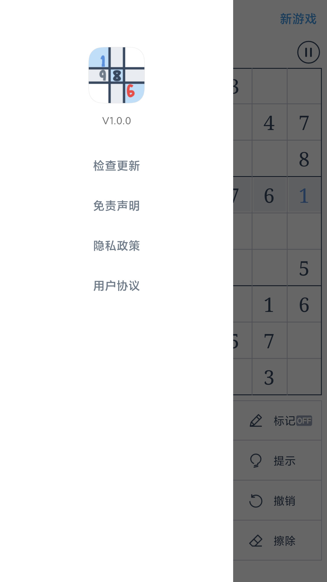 数独盘面是个九宫,每一宫又分为九个小格。在这八十一格中给出一定的已知数字和解题条件,利用逻辑和推理,在其他的空格上填入1-9的数字。使1-9每个数字在每一行、每一列和每一宫中都只出现一次,所以又称“九宫格”。