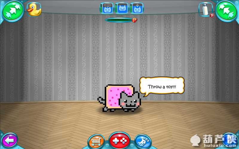 有着欢快有趣的形象和动作,并且带着2D像素风格的画面。配合上那首从头到尾都是“Nyan”的曲子,绝对是洗脑度十足。游戏的操作是简单直观的触屏形式,单击屏幕跳跃,双击可以二连跳。获得火箭超人等道具可以飞行的时候,直接按住屏幕然后移动自己的手指是控制飞行方向。玩的时候我们要做的就是不断的去收集各种蛋糕、牛奶、点心糖果,并且避开黑猫、飞碟、狗狗等等危险的家伙。