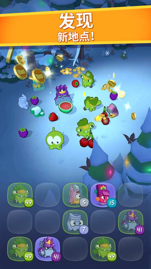 “Nommies”是成功的关键——Om Nom的朋友们可以合并在一起来解锁新的朋友:功能更强大的Nommies——帮助他们吃掉美味的水果!