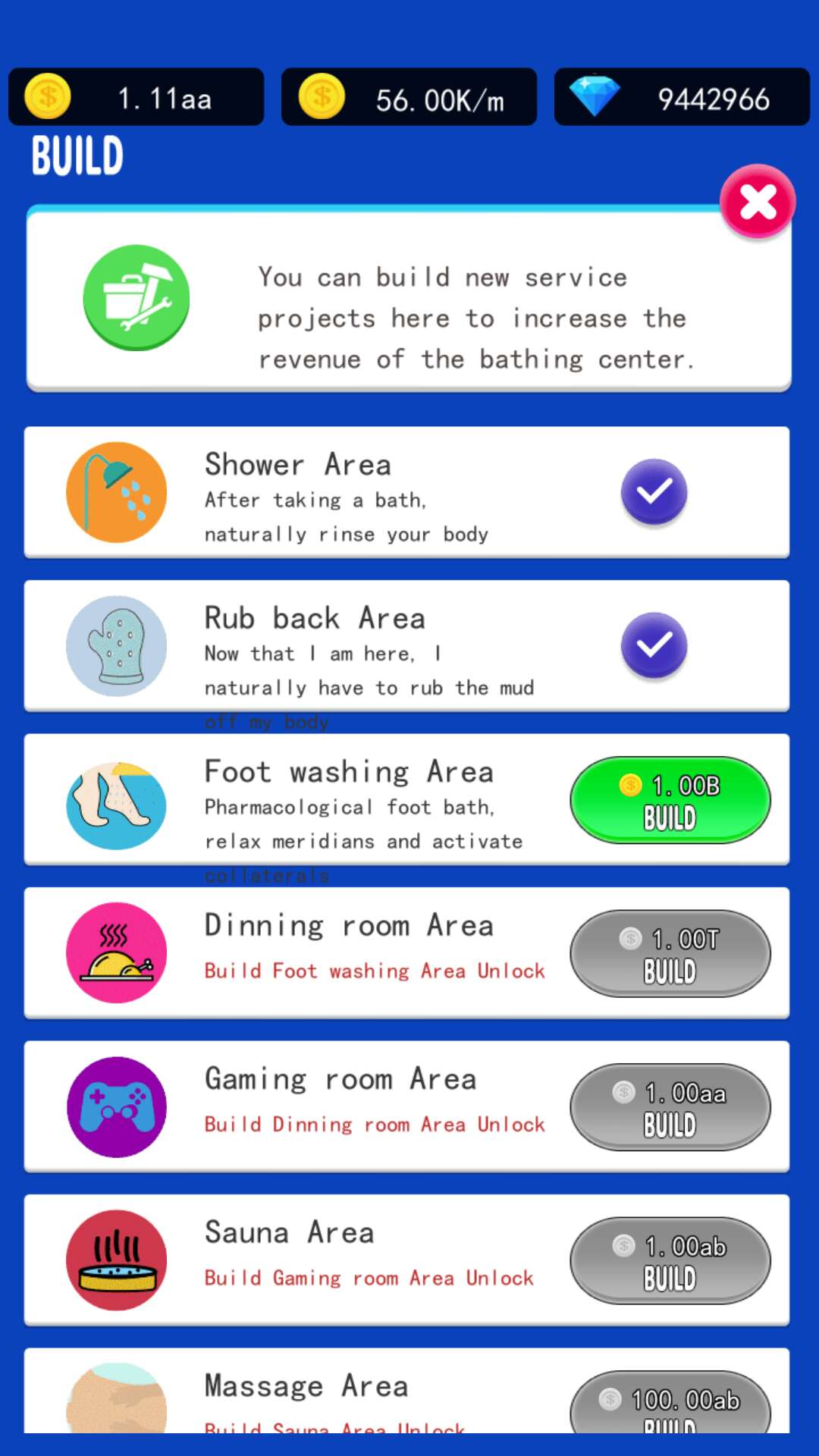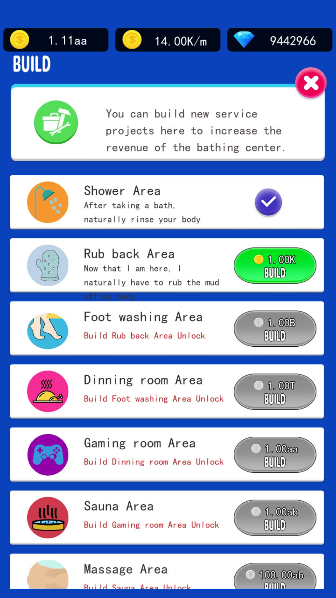 日式温泉浴、足部按摩、桑拿模拟开发游戏 欢迎来到我们精心制作的“闲置水疗大亨”游戏,这是一款有趣可爱的模拟商业大亨游戏,用于放松水疗项目。游戏的目标是服务来水疗项目的朋友,赚钱升级水疗区、洗脚区、按摩区、桑拿区、私人影院区、美食区、沐浴区等各种水疗设施. 已将 Spa Tycoon 发展成为更大更出名的公司。 《闲置温泉大亨》是一款疗愈休闲的闲置大亨游戏。购买升级温泉设施,打造个性温泉,真正的ASMR体验,多种游戏体验等你来体验。这是最好的开发游戏,可以让您使用专业的酒店服务,让所有客户满意的最佳体验。像对待上帝一样对待每一位客人,为他们提供最好的按摩和温泉汤,以满足他们的需求。 你喜欢“闲置水疗大亨”水疗按摩带来的满足感吗?如果是这样,那么你不是唯一的一个。您的客户将来到您的水疗沙龙,为他们提供最完美的水疗按摩服务,让他们满意。您的水疗中心是最好的水疗游戏,为您的客户提供各种服务。 您可以使用金币升级您的水疗中心、解锁新设施并解锁新型按摩享受。比如提升前台工作人员,加快收款速度;升级衣柜,增加酒店入住人数;升级温泉以增加收入;升级洗脚区,提高服务效率和服务收费;还有淋浴区、按摩区、美食区和私人影院。区域、水疗区、桑拿区等都是您可以升级服务客户的地方,给您一个愉快的探索体验!