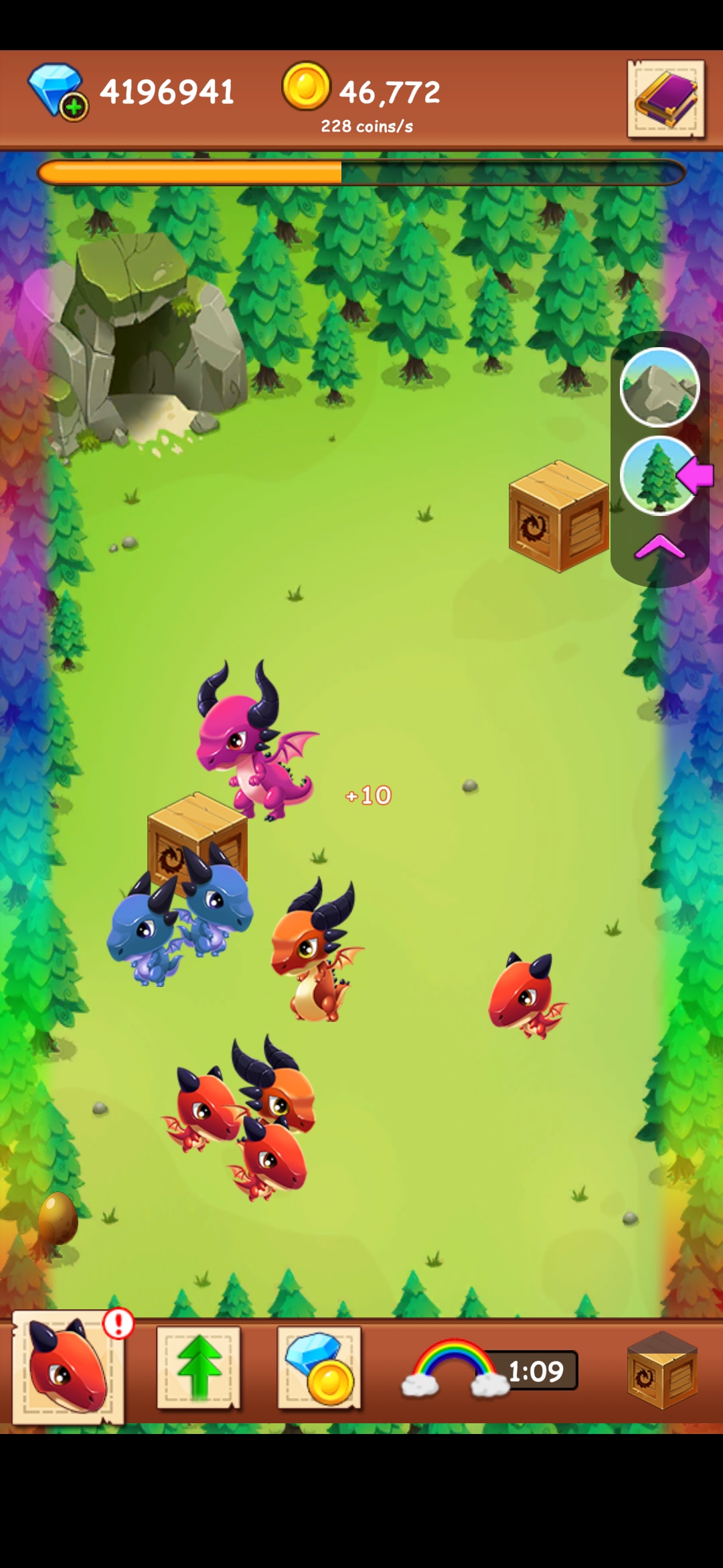 利用钻石和彩虹生产来更快地获得更好的龙。不要忘记每天申请离线黄金!