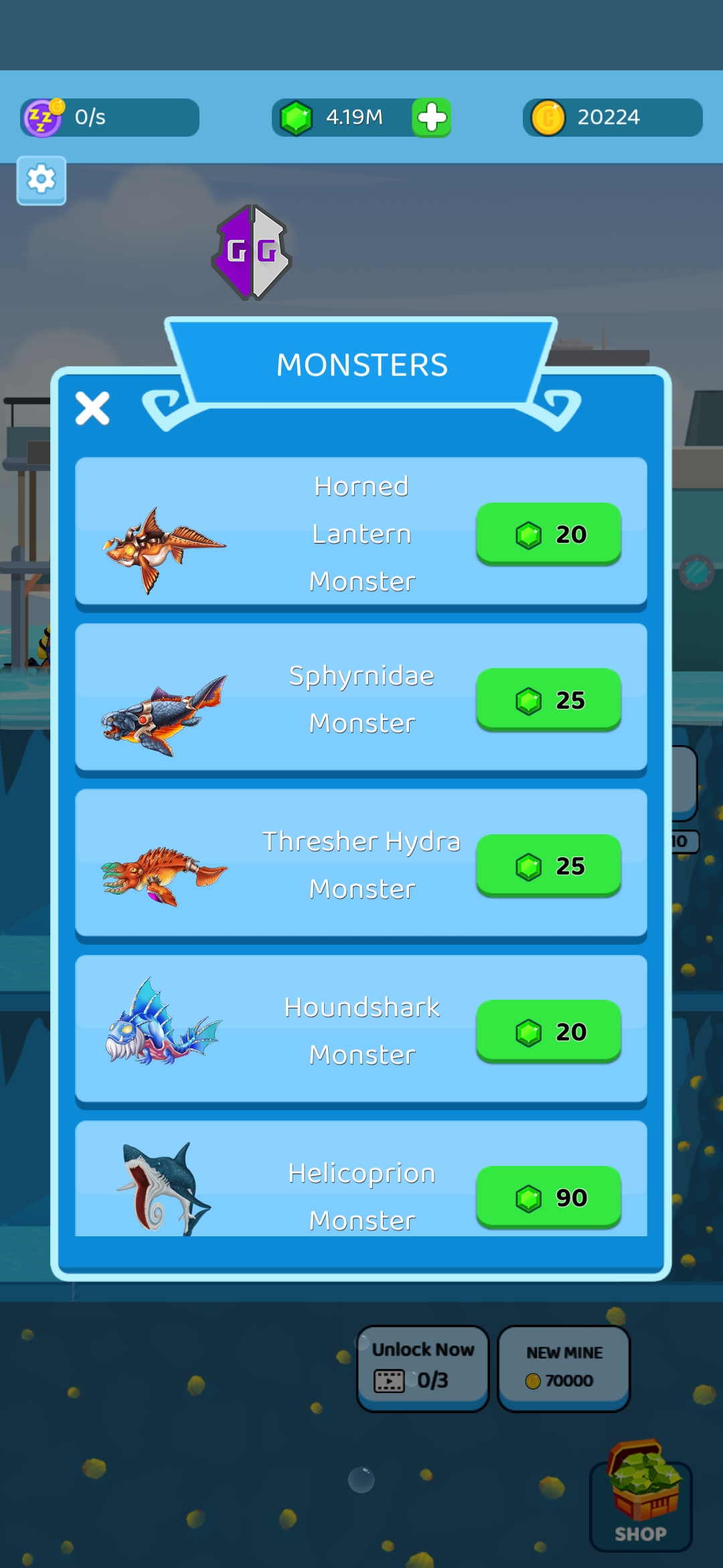你可以让你的宠物水下海怪工作,收集金币并建立你的海洋怪物物种的虚拟世界。收集不同的物种,让它们变大变强去战斗。