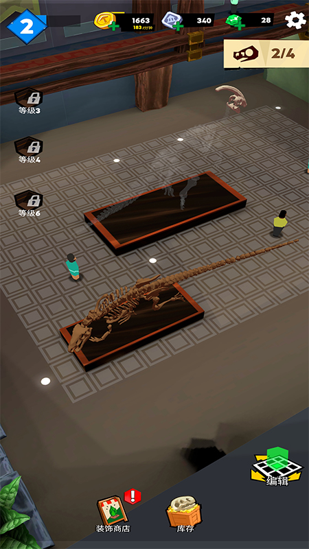 当你将部分骨骼挖掘清理后,便可将其收藏于博物馆中,供游客欣赏,并赚取小钱钱。