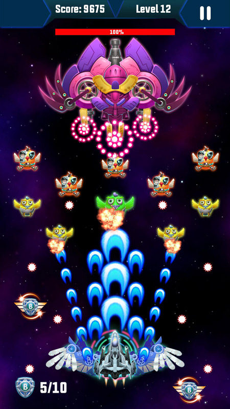 打击银河攻击:外星人太空鸡射手带给您一场与鸡侵略者中队的史诗般的战争。他们是猎鹰式的现代战斗机-具有先进技术和最强武器的强大军队。