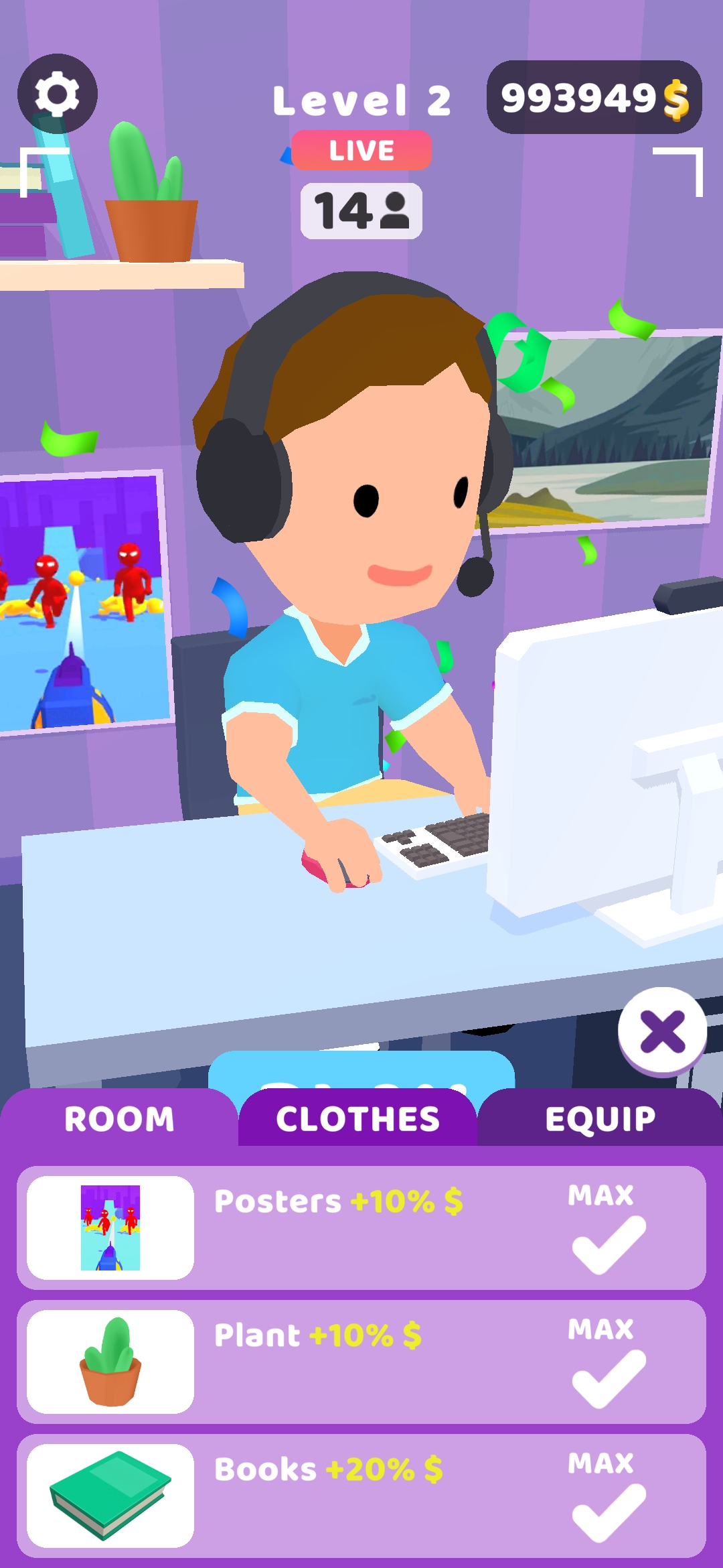 Blogger模拟器 成为世界上最著名的流光! 升级您的流媒体工作室,设备,角色并提高玩家技能以收集捐款。 获得数百万的追随者!