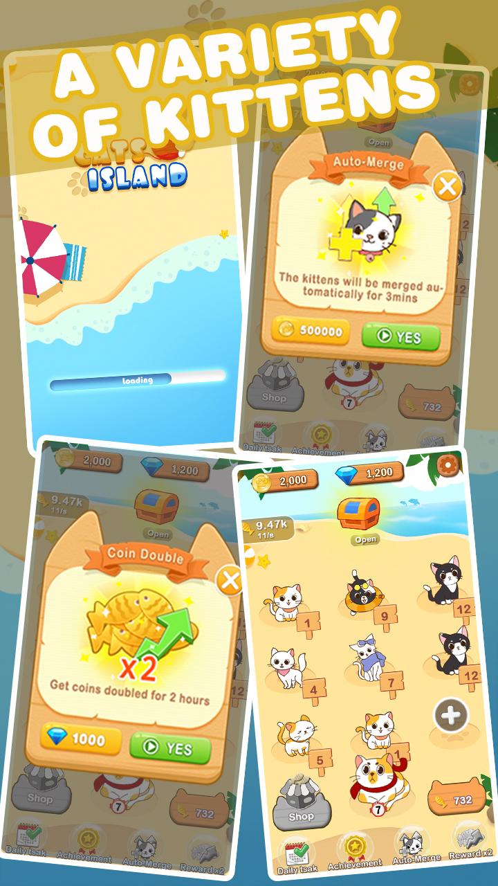 猫岛是一款经典而简单的合并游戏。 滑动指尖,合并2只同级猫,获得丰厚奖励。 您需要购买新的并合并相同的猫以获得更好和升级的猫。 游戏特色。 1.动动手指合并猫:一款非常简单的合并休闲游戏 2.可爱的猫图形:多达数百种猫图形 3.丰厚的奖励:合成最高级的猫可以获得丰厚的奖励 4.放松大脑:你 可以用这个游戏来放松你的大脑