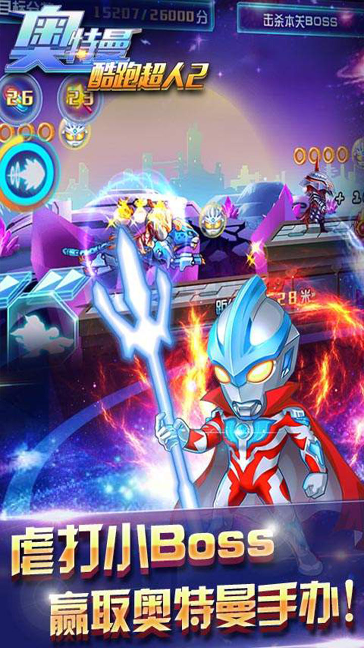 《奥特曼酷跑超人2》是一款跑酷类休闲游戏,奔跑吧!奥特曼!角色培养+横版动作革命性的天天酷跑类游戏强势登陆各大平台!宇宙正在遭遇最大危机,银河公主亟待救援,独创的BOSS系统让你体验用“奥特光线”横扫小怪兽的快感!立即加入,与成千上万的玩家一起扮演宇宙超人奥特曼救回公主,角逐出最强酷跑超人!官方正版酷跑奥特曼强势来袭!