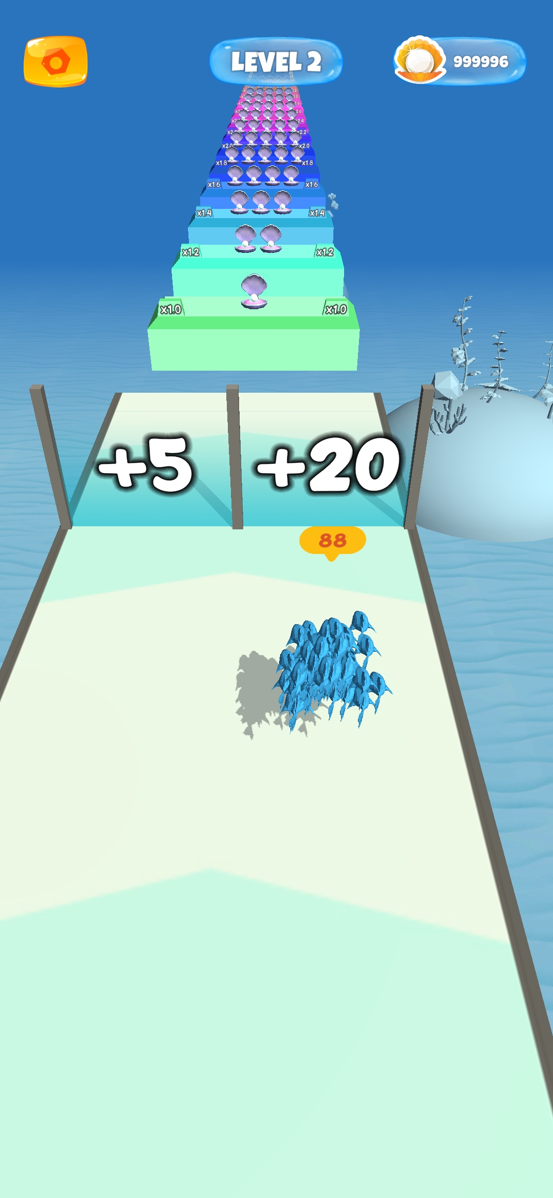真正的人群体验 你的鱼有多大? 控制你的鱼群,选择最好的门并跳过障碍物;地雷、网、反对的人群。 收集大量珍珠,变成更大的鱼!你可以升级你的鱼和你的鱼群大小。