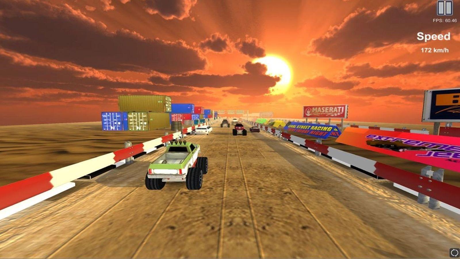 赛车游戏疯狂的道路交通和可定制的卡车。在游戏中你必须赚点,避免与汽车碰撞。所有升级里面的游戏都是免费的!您可以使用点购买新卡车,卡车和升级打开新的位置。有7辆卡车,4位置和5游戏模式,包括“免费”模式