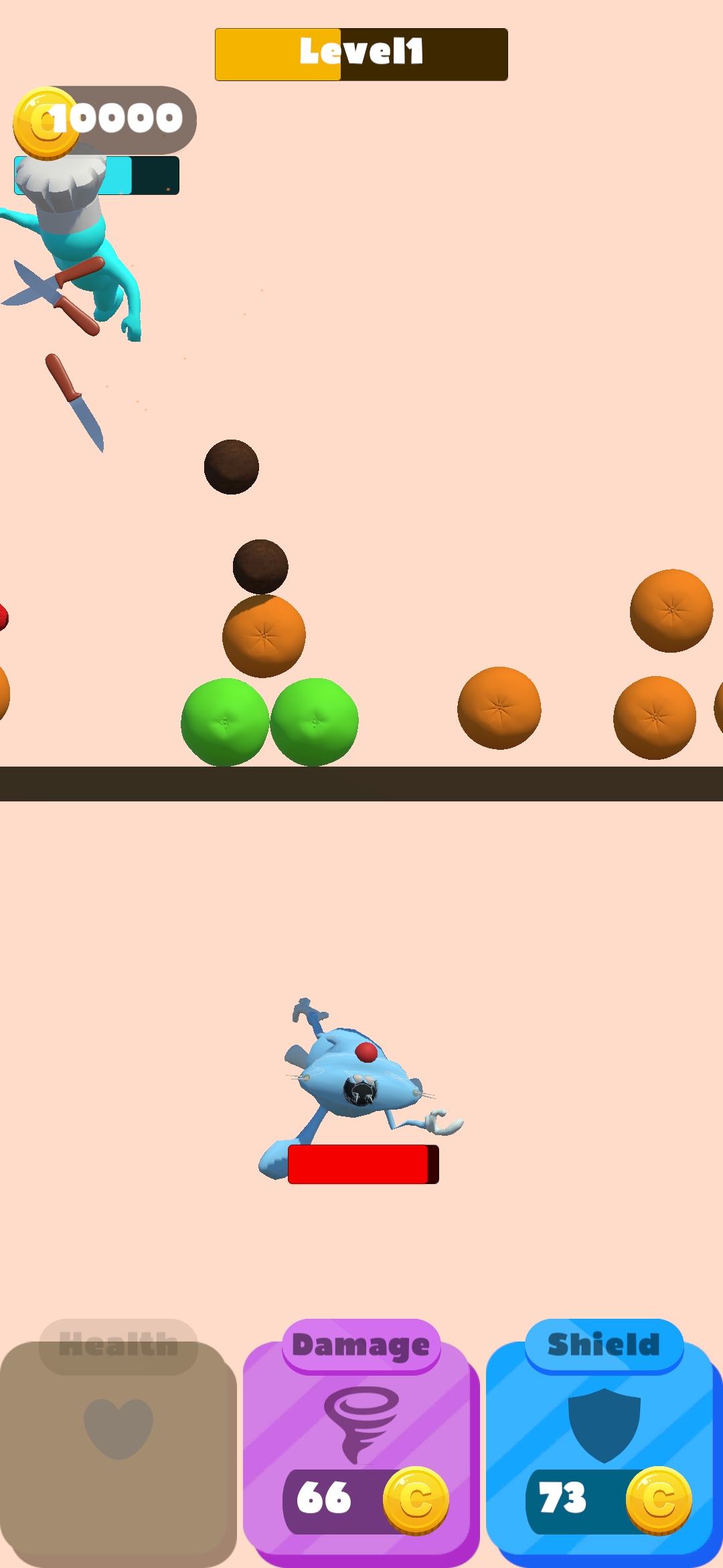 Oggy and the cockroaches水果切割机是一款3D游戏,充满了令人满意的功能。滑动屏幕控制射击和切水果,玩这个游戏就是这么简单!通过升级特殊道具(长时间射击、健康强度和盾牌)让您的游戏更加精彩。因此,如果您正在寻找一些令人满意、多汁的动作游戏,那么这款游戏适合您。现在玩,享受切片!