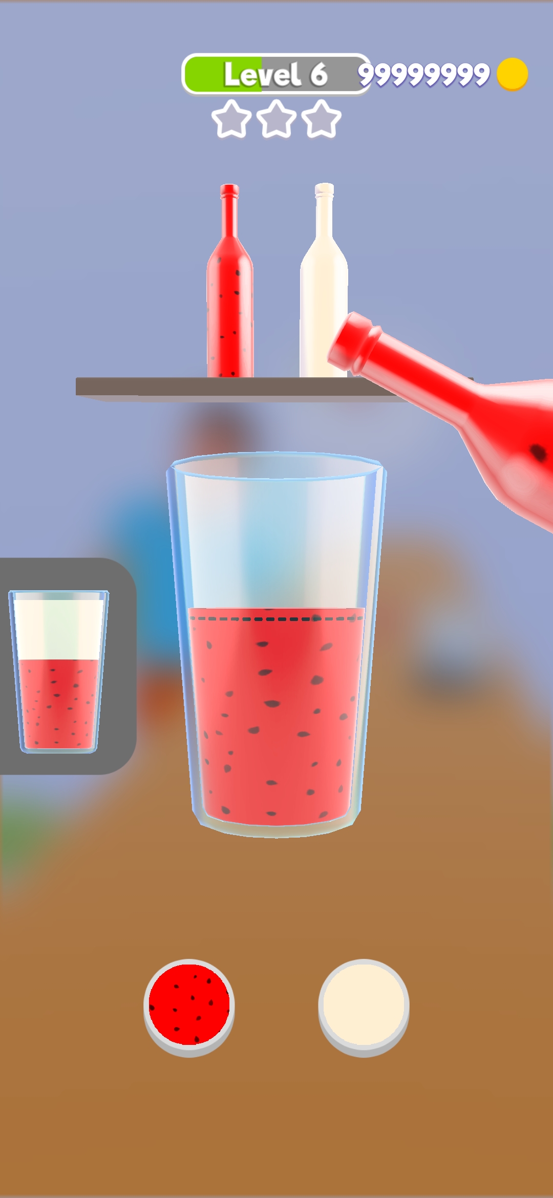 向所有人展示您可以调制出完美的鸡尾酒!这款极其简单的游戏(但令人上瘾!)可让您将不同颜色的饮料混合成非常清爽的组合!放飞你的幻想!