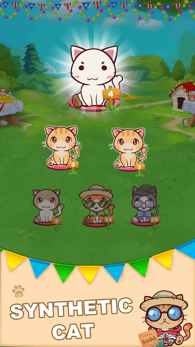 猫党是一款经典而简单的合并游戏。轻扫指尖,合并2只同级猫咪,即可获得大量奖励。刚开始你是一只小可爱。您需要合并相同的猫以获得更好和升级的猫。