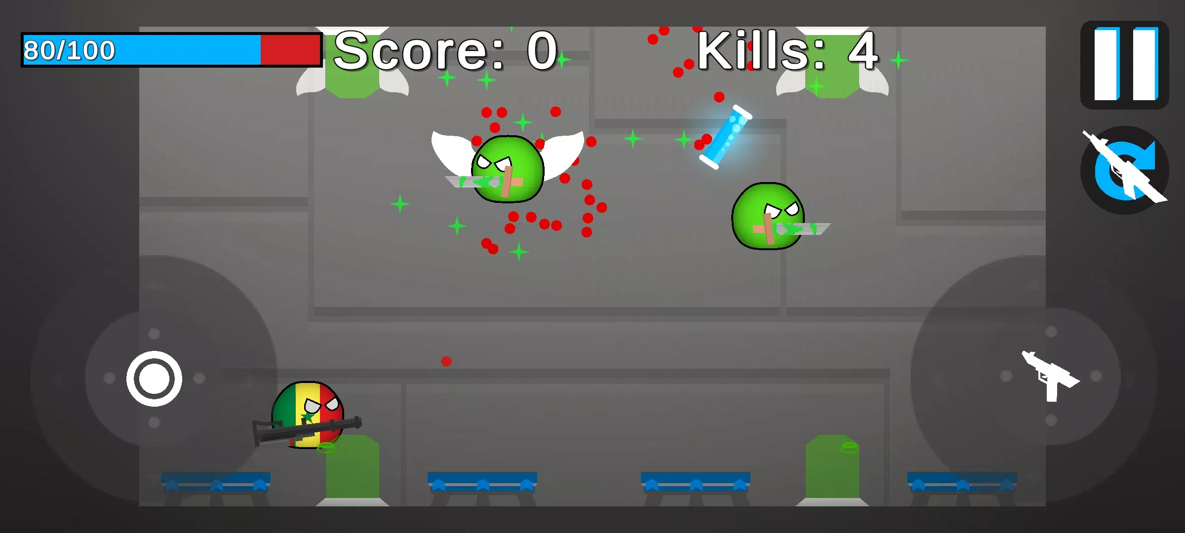 Countryballs: Galaxy Clash 是一款快节奏的 2D 竞技场射击游戏,发生在太空和未知星球上。用你的不同武器和农场硬币和粘土对抗一波又一波的外星人,以提升你的技能和能力,并解锁新的球和化妆品。在所有不同的地图上击败自己的高分。玩得开心!