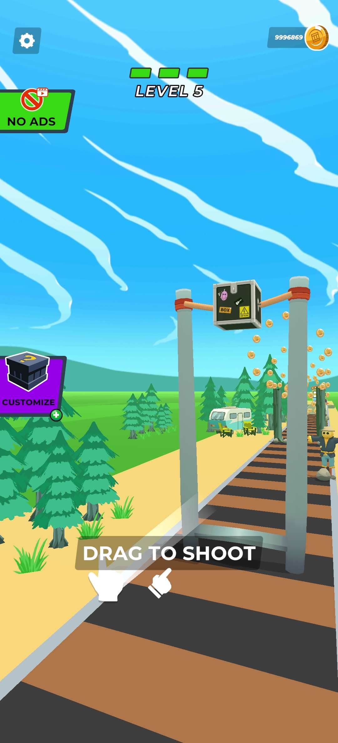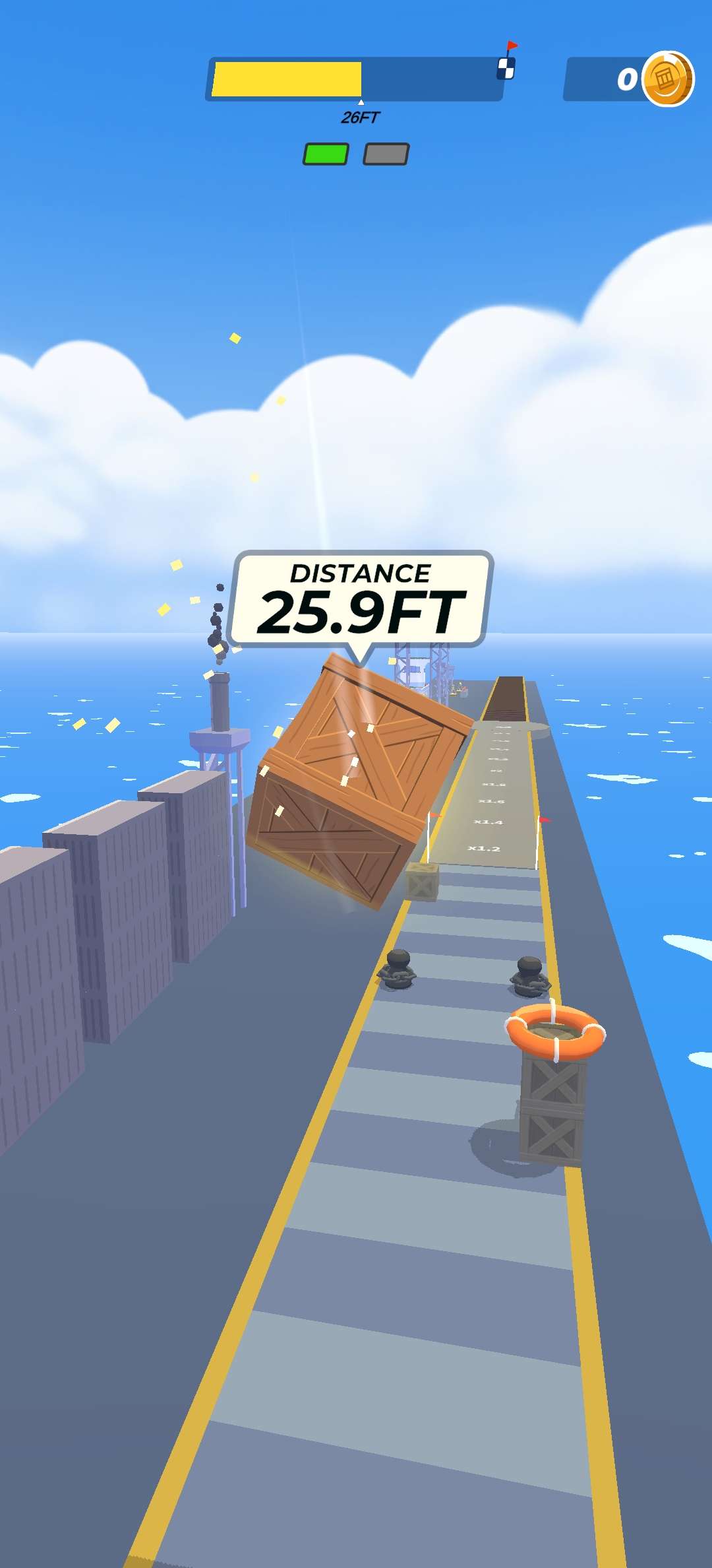 把箱子打飞。计时,让箱子飞起来!到达终点通过关卡。