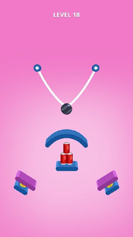 割断绳子把球放出来。击打所有的罐子完成一个关卡。