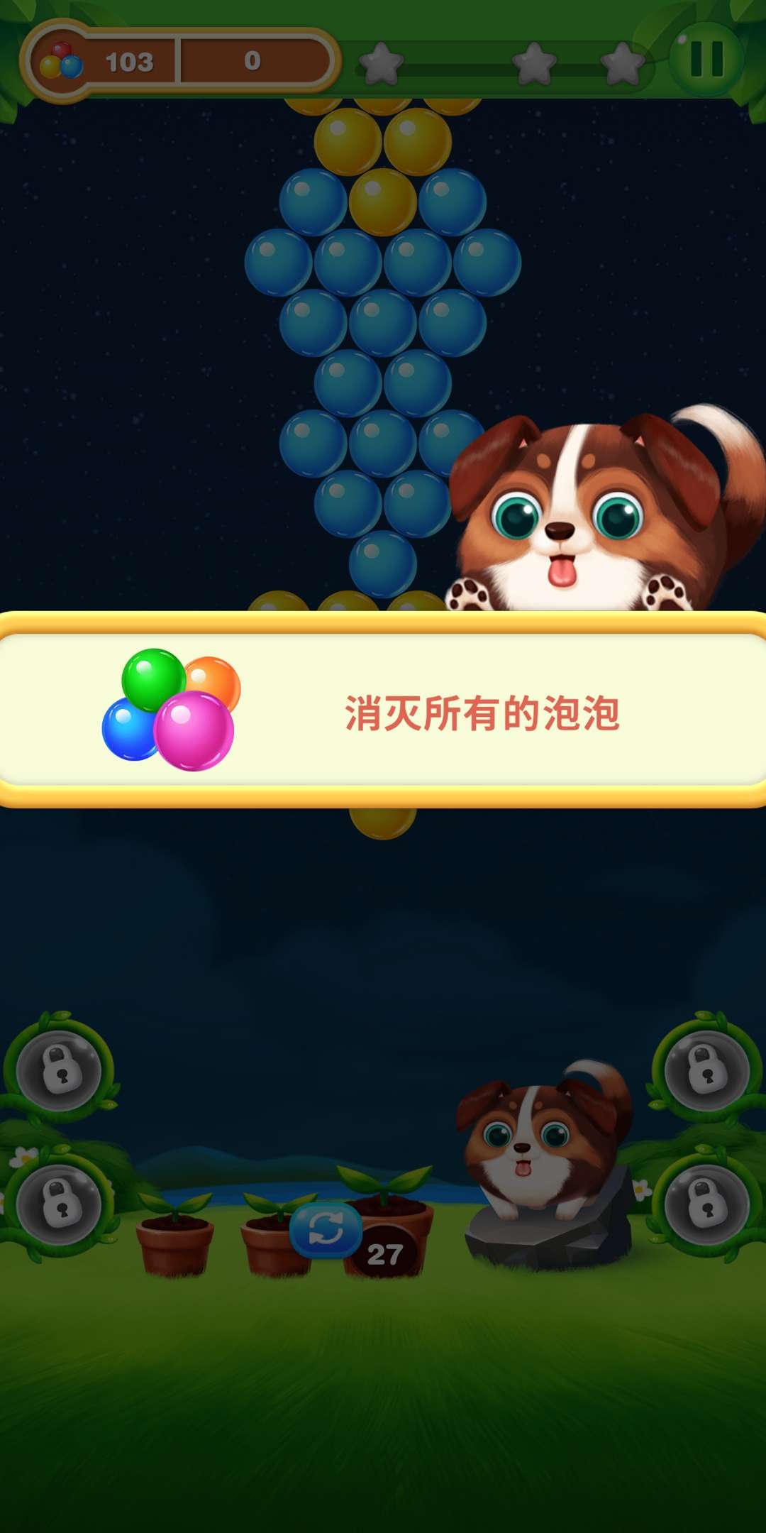 消除所有泡泡就可以升级了