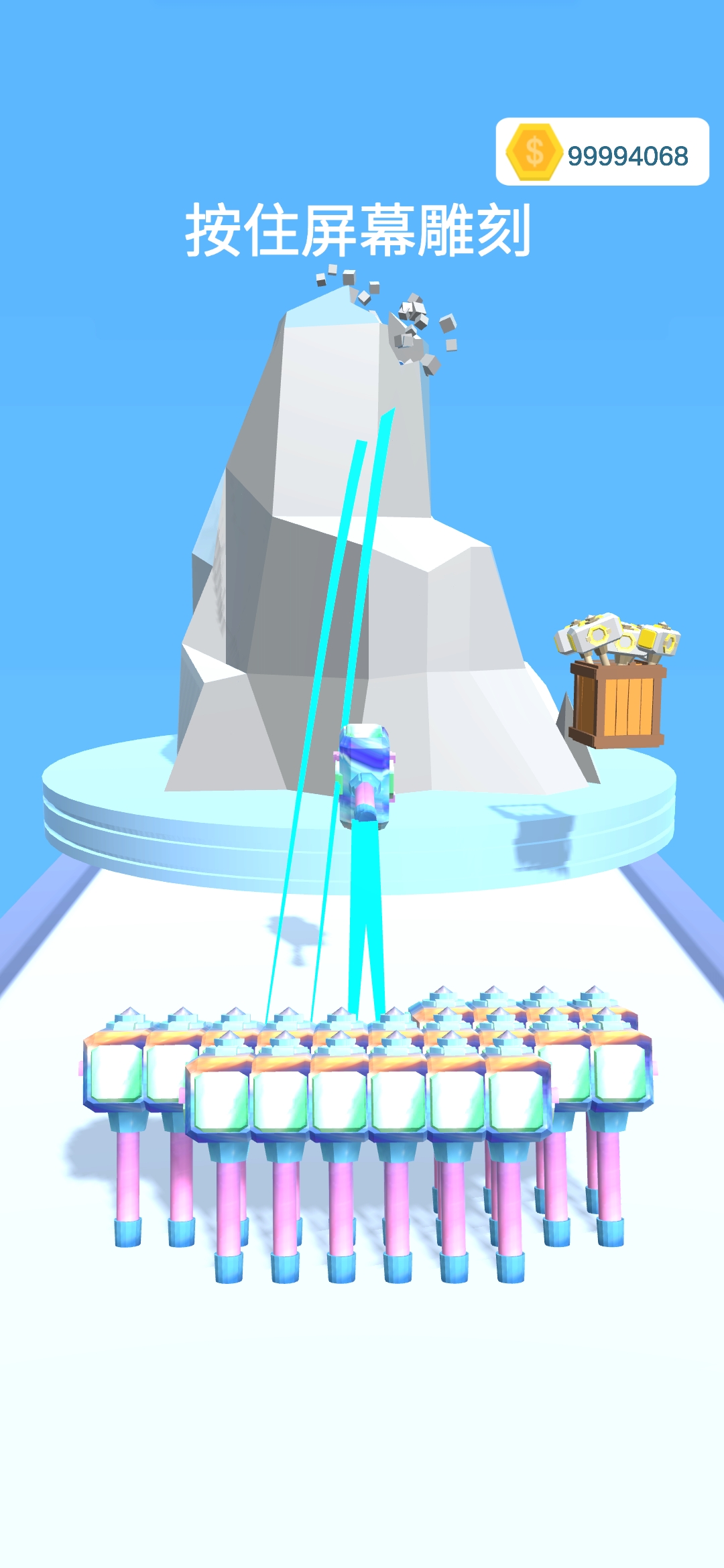 用锤子敲开石头,看看里面是个啥 在跑酷的路上收集锤子,终点长按屏幕,锤子会自动去砸开石头,里面藏着很多东西哦