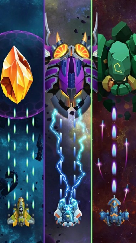 - 升级和发展您的太空船到新的形式并获得新的力量
