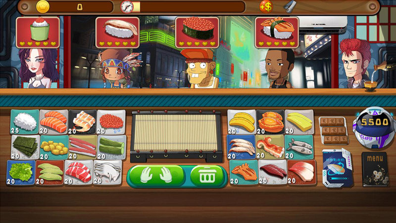 制作寿司可不是简简单单做出来而已,还要在有限的时间里完成客人指定的菜单才行。可不要手忙脚乱哦!