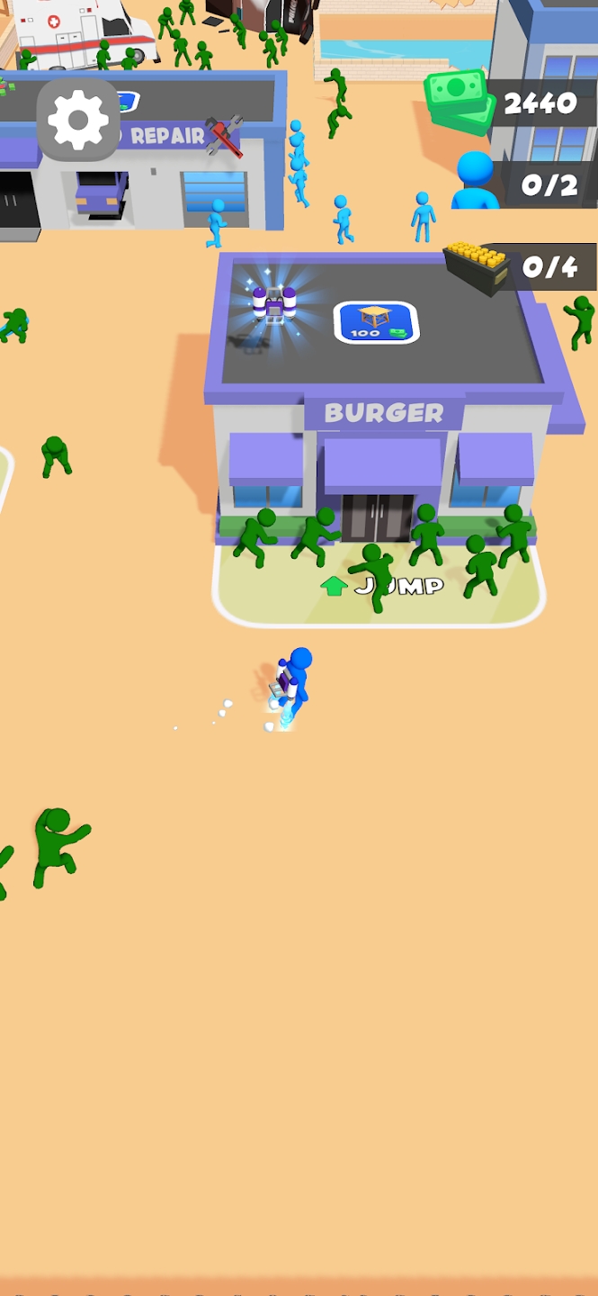 在这款生存街机游戏中,您的任务是从僵尸末日中拯救幸存者,并利用他们来工作和反击!