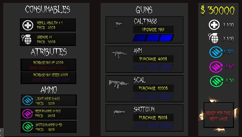 -通过生物的浪潮,赚取黄金,购买新武器和升级。你也可以通过购买技能升级来增强你的士兵。