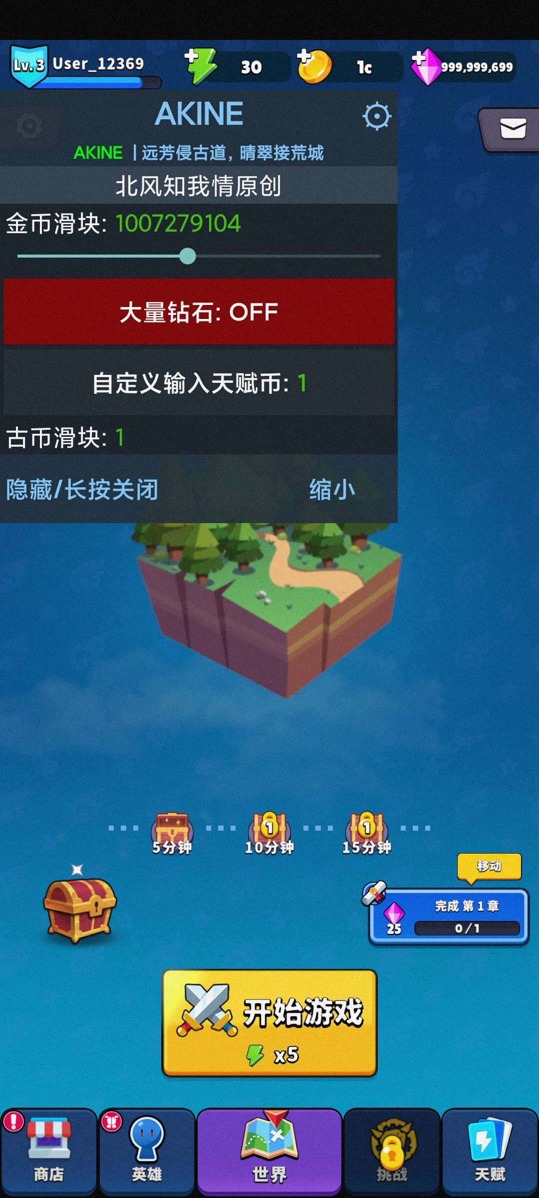 ÄÚÖÃMOD²Ëµ¥:1.½ð±Ò»¬¿é2.´óÁ¿×êʯ3.×Ô¶¨ÒåÌ츳±Ò4.¹Å±Ò»¬¿é°µÆÁ½çÃæµã»÷·µ»Ø¼´¿ÉÉèÖÿÉÉèÖÃÖÐÎĵÚÒ»´Î½ø»áÇë¸øÓèÐü¸¡´°È¨ÏÞ£¬ÉÁÍËÖØ½ø¼´¿É