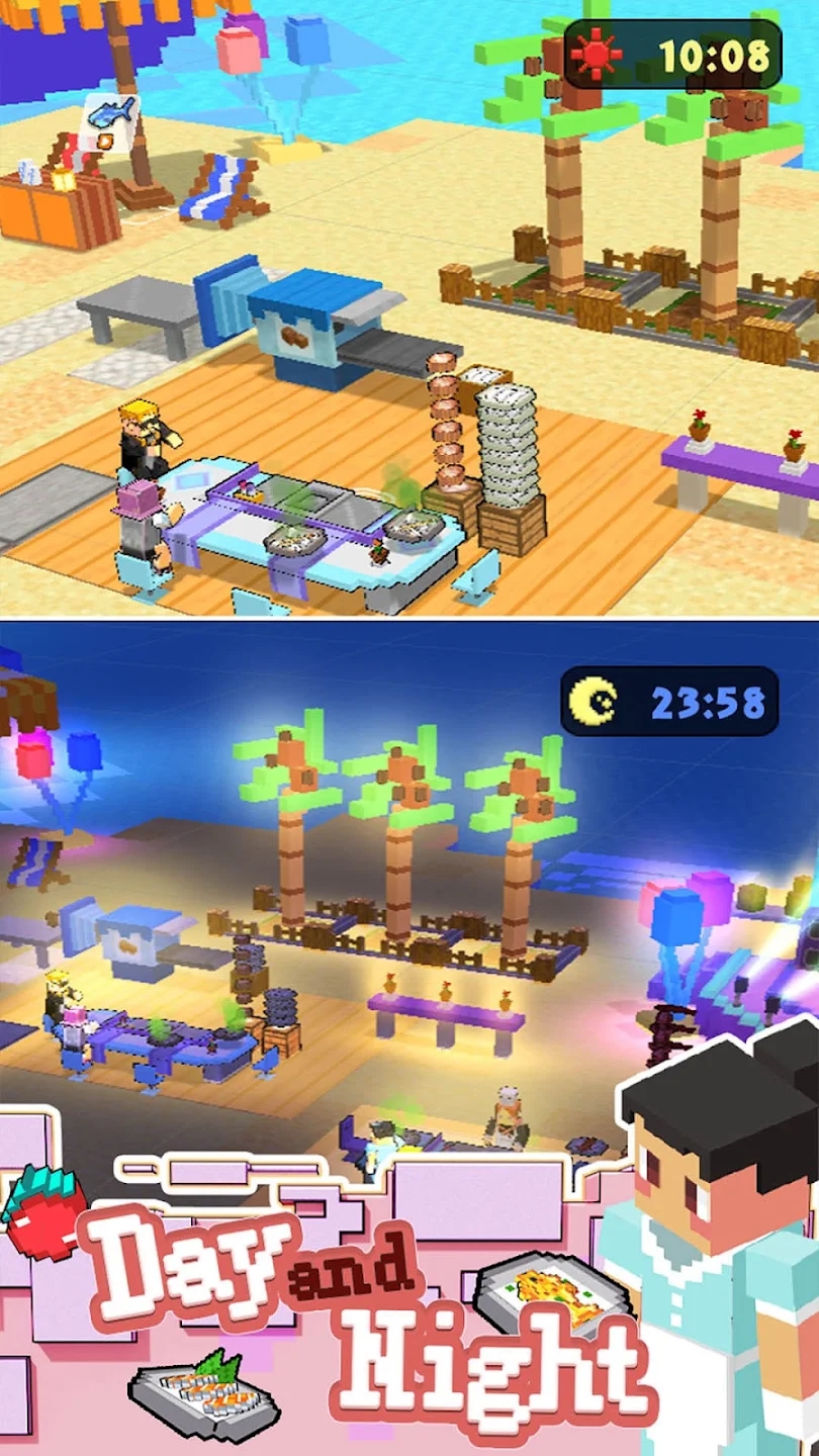 建造餐厅设施并担任兼职厨师,为顾客服务并在必要时赚取收入;种植各种食材,将其带到炉子上烹饪美味的食物;承包这片池塘,体验手工钓鱼的乐趣;订购独家深海金枪鱼,使用精湛的技术制作精美的寿司出售;学习啤酒酿造,让顾客享受到小麦酯清新浓郁的香气;雇用员工来帮助您应对不断增长的顾客数量,否则餐厅通常会爆满并排起长队...