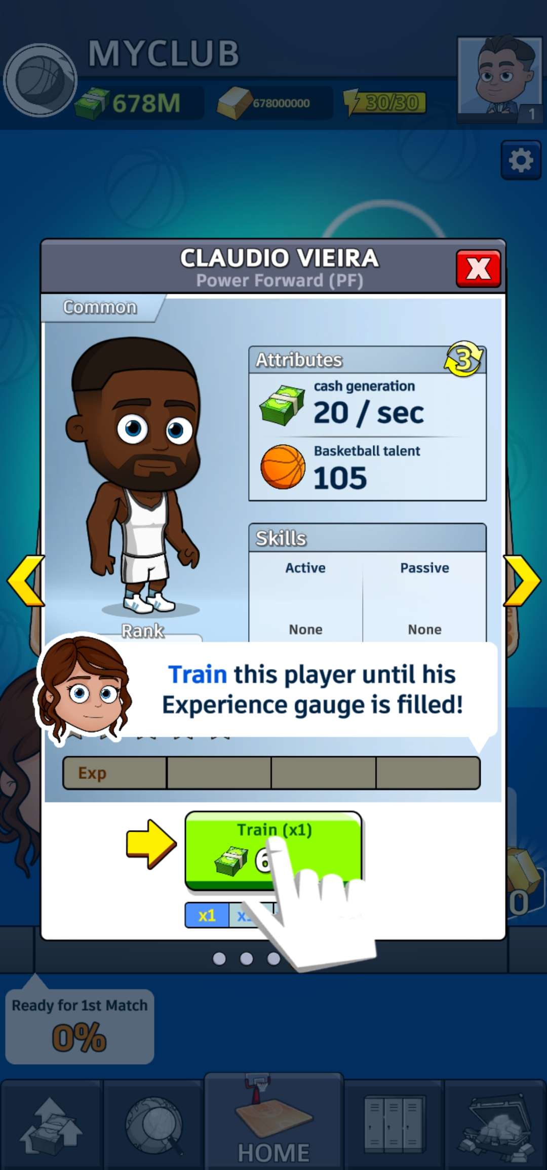 ·训练球员,提升他们的篮球技巧(投篮、传球、带球、防守...)以创造更多价值和收入