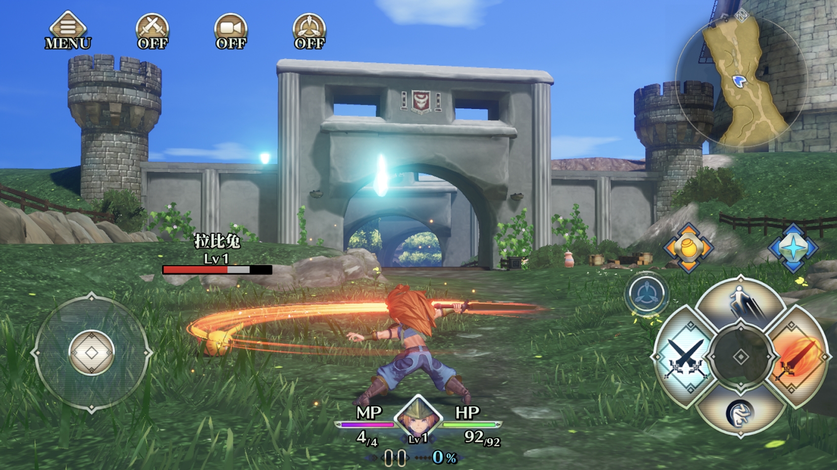 由跳跃攻击、连招攻击、闪避敌方攻击等多彩的动作重新构筑。《圣剑传说》系列经典的“环状指令”也得以保留。在此之上还新增了“快捷键指令”。