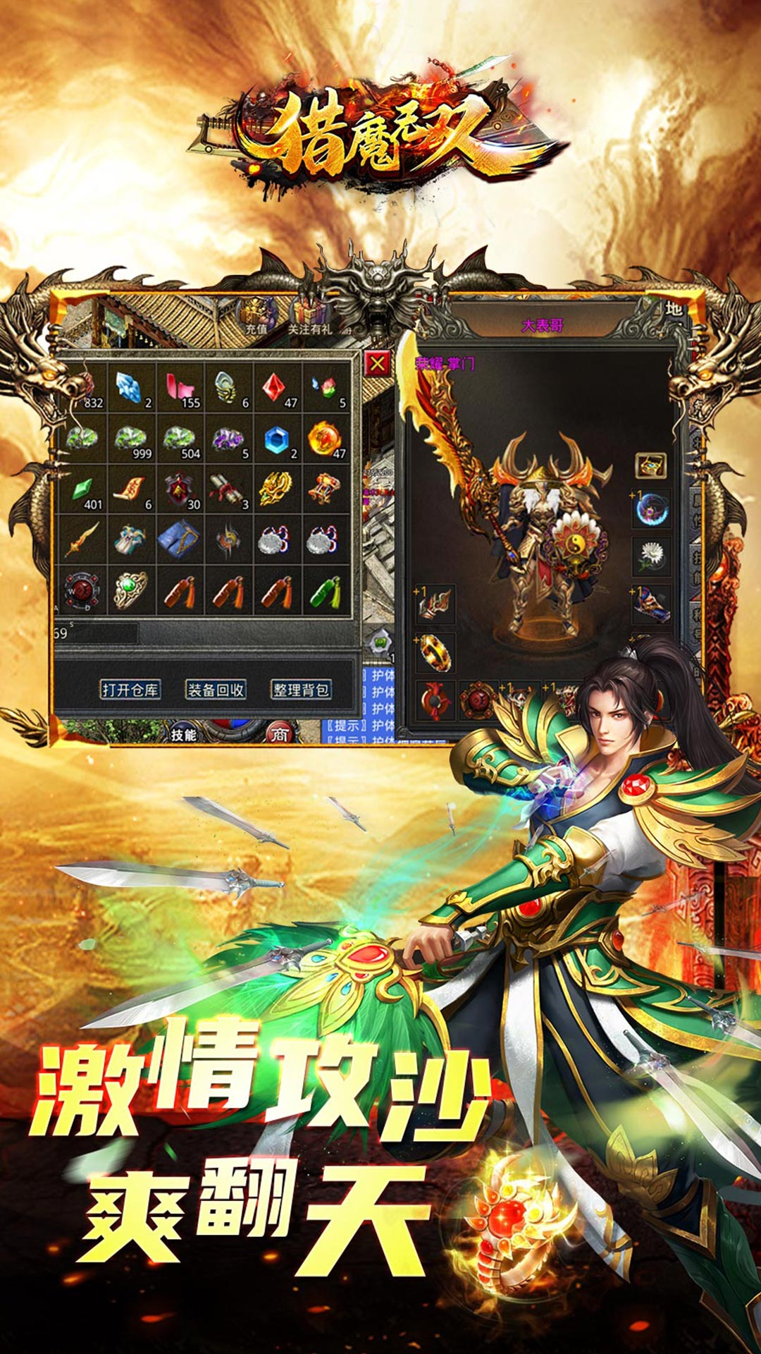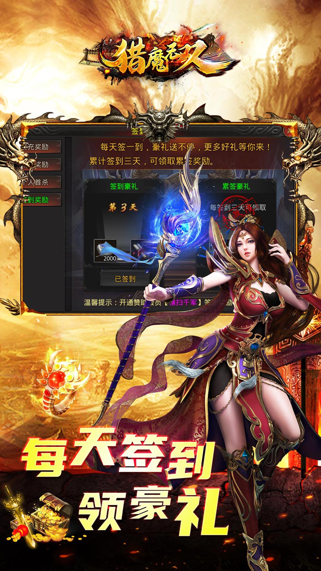 1、上线即送幸运项链,泡点经验输入福利礼包码“vip666”免费获取;2、无限爆金币,超多福利,每天签到免费领好礼;3、经典三职业,装备都能打,材料怪物爆出,副本活动每天刷新;4、本服越高的大陆爆的装备越好!玩法简单,一切专为激情打造!