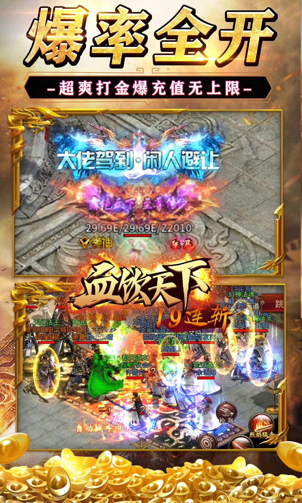 1、登录就送首充,炫酷时装,超强神器!全屏施毒,助你一飞冲天!2、爆率全开,无限爆充值!时装神器和红包随便爆!3、兔年全新神器无限刀版本,装备全靠爆,超多隐藏地图,全新版本等你体验!4、七大大陆,神装合成,凶猛BOSS,更有稀世珍品都在这等你探索!5、激情攻城沙巴克,准时开启,带上兄弟等你来战!