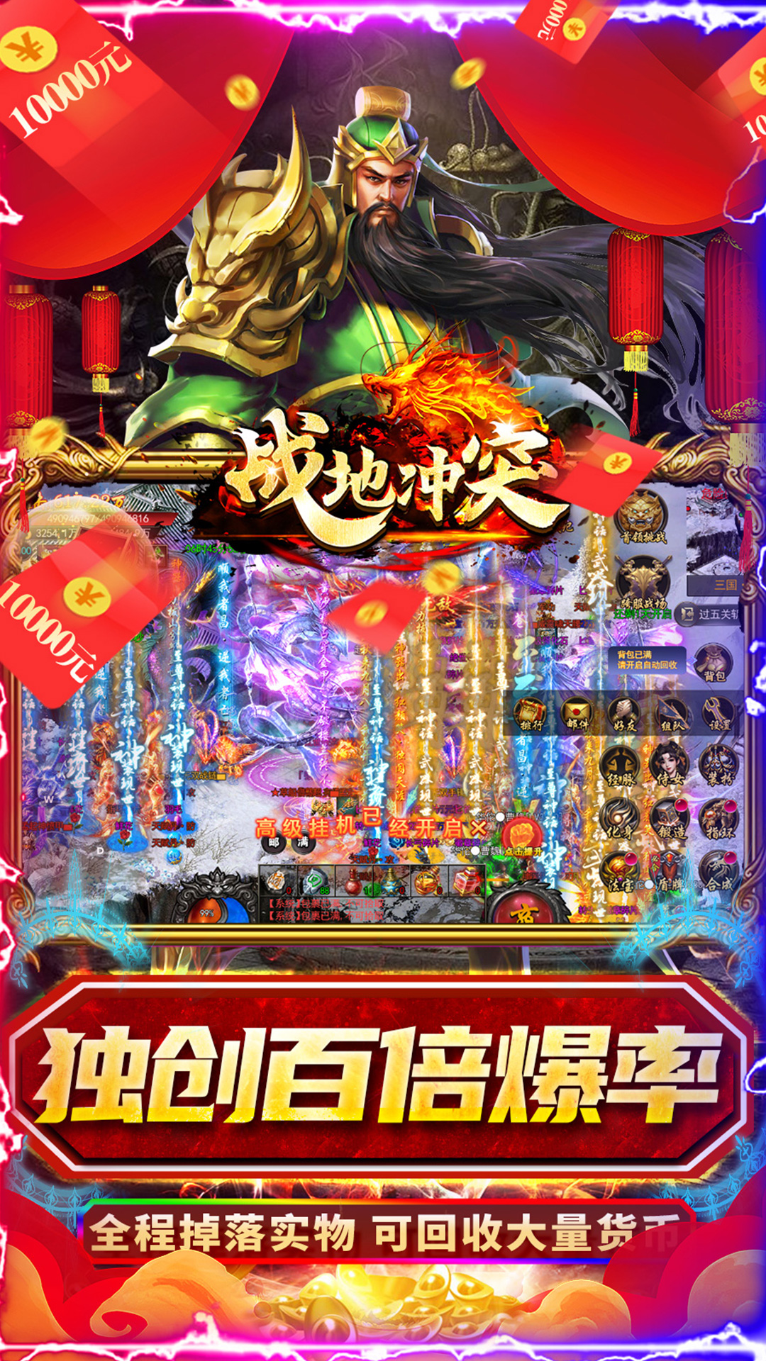 真独家三国传奇,年度爽服,三国鼎立,称霸沙城,开局领5000元红包、破解号特权、打金魂环、送全屏拾取