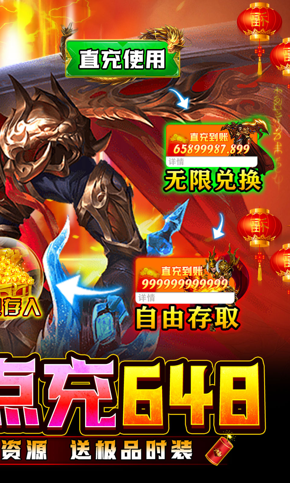 1.开局福利:上线送满vip,登陆免费送充值,100万元宝、10亿金币,绝版时装套!2.全新版本:游戏登录免费点击送充值,激活游戏内vip等级。3.内置战法道买断商城,激活可以将超级神装升至满阶,酷炫动态时装激活就送!4.百倍游戏爆率,boss疯狂爆,保证跨服装备轻轻松松爆满地,不花钱也能当大佬,免费玩家首选!5.首冲10元,十倍返利真充卡。新增商城一次买断至尊雷霆装备!