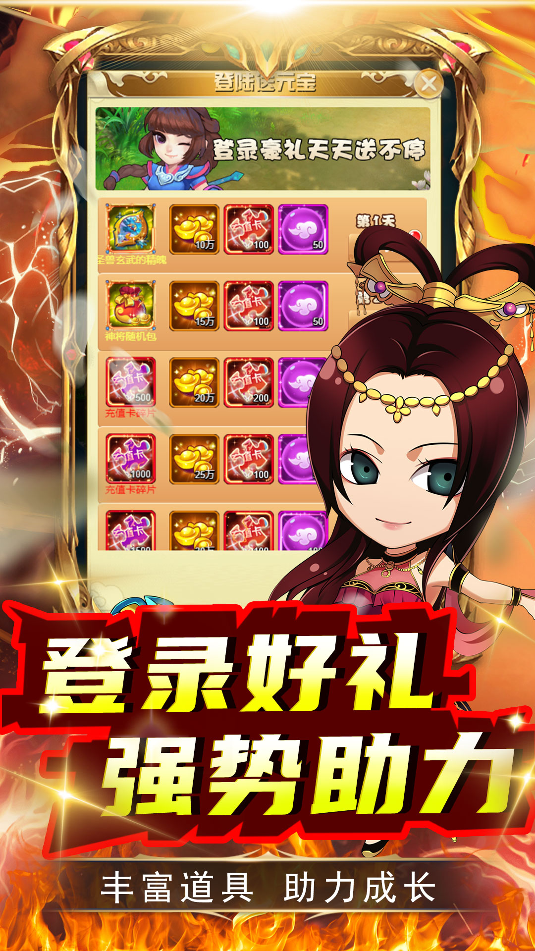 1.Ê¥ÊÞÐþÎä¡¢½ðÆ·¹ØÓðÎ佫¿ª·þÖ±½ÓËÍ£¬Ç¿ÊÆÖúÕó2.GMÉ̳Ç1Ôª±¦¹º³äÖµ¿¨Ë鯬3.Ë¢Õæ³ä£¬Õ½¶·±¬Õæ³ä£¬Õ½Á¦±©ÕÇ4.Ê׳äÊ®±¶Ôª±¦¡¢¹ØÓ𿨣¬×ÊÖÊ¿ñÉý5.¿ç·þ×é¶Ó¡¢¿ç·þBOSS¡¢¹ý¹ØÕ¶½«µÈ¸±±¾Êý²»Ê¤Êý£¬µÈÄãÀ´Õ½£¡