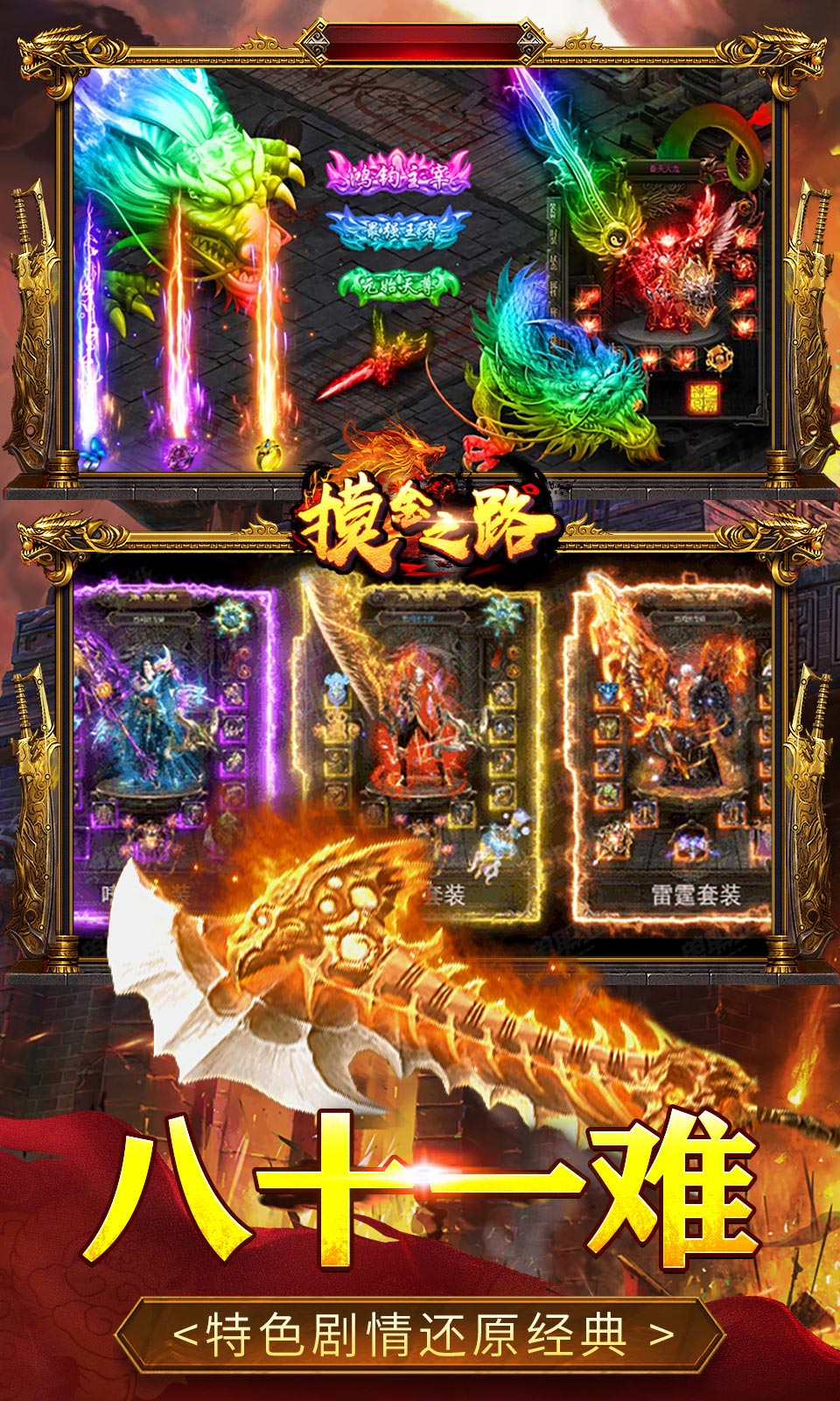 1、创角福利:上线送全套终极技能、刀刀绿毒、自动拾取,解放双手轻松挂机!2、充值比例1:1000,每笔尊享超高额外返利!3、散人福利送不停:亿万元宝+千元充值,福利领到手抽筋,0氪一样能霸服!4、无限刷充:击杀任意BOSS均有几率爆出实物,永久回收充值领不停!5、特色剧情:九九八十一难,完成即可获得炫酷时装+神器装备+海量材料!