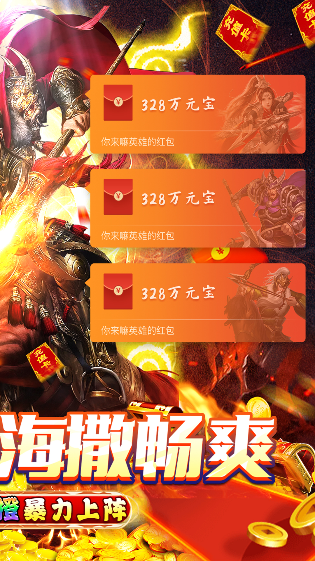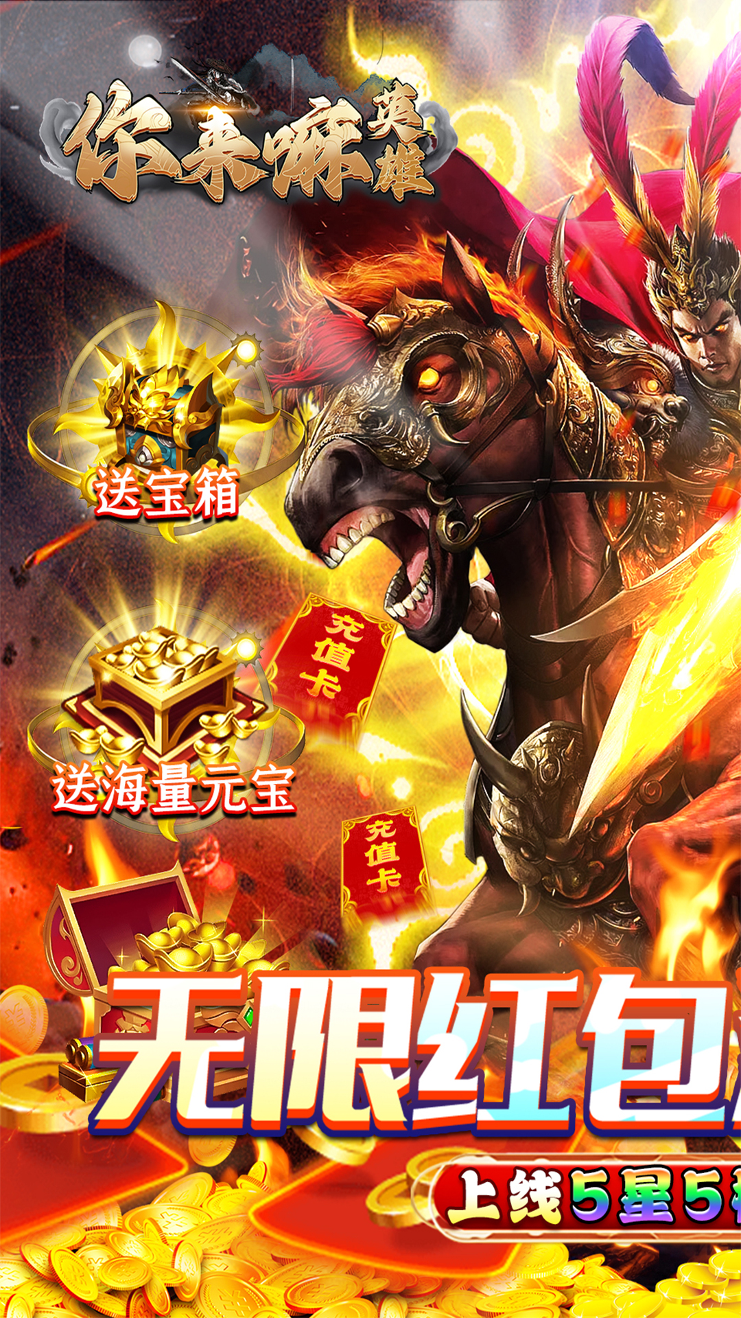《你来嘛英雄(GM满编制开冲)》是一款以三国为背景的写实画风的放置养成游戏,上线送5星5橙将,直接暴发户式开局,从此通关再也不是问题,一路平推;每天签到送100连抽,爽的不行;GM修改器版,刷充余额无上限,刷多少用多少,不要陷阱不要套路;挂机产出海量红包,充值卡、碎片、元宝全部大量送送送!!这还不来?等什么呢?!