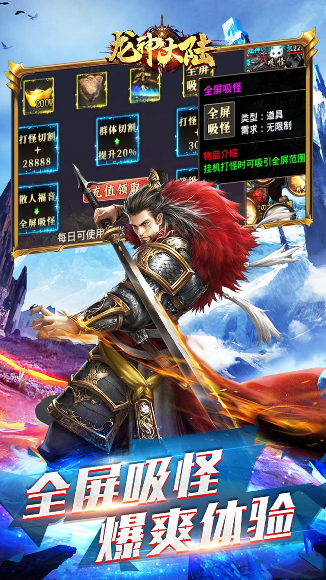 《龙神大陆(全屏光速吸怪)》是一款单职业魂环吸怪类传奇手游,上线就送神器,开区就有活动,激情拉满。吸怪只需一秒,激情却是永久,全民祈福,成就奖励,都是专为散人设置;活动BOSS福利拉满,兵家必争,不是在激情中就是在激情的路上。激情累了困了不要紧,游戏自带挂机功能,自动下图,自动随机,自动回城,还怕不能挂机刷资源吗。简单粗暴,心动不如行动吧!