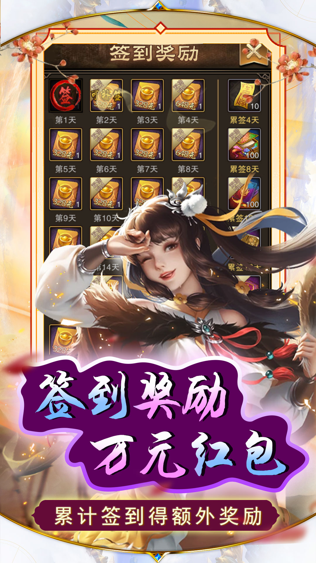 1、登陆游戏领亿元宝2、刷充转盘内含充值卡、元宝红包、天书、指环等道具,赶紧抽起来!3、充值比例1:30000(元宝),内置无限资源阁,1元宝畅购道具4、限购礼包优惠价格超级实用5、激活月卡、终身卡每天可领取元宝及充值卡提升GM经验6、VIP奖励免费领,首冲任意金额拿猛将“吕布”,助你一臂之力。7、次日登陆领帝姬!初始魅力100!更有技能加成!