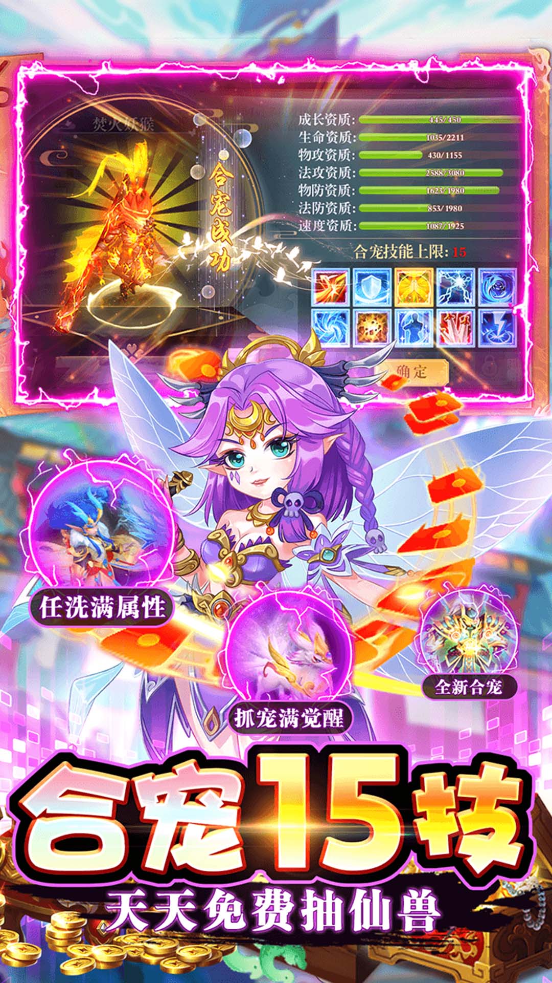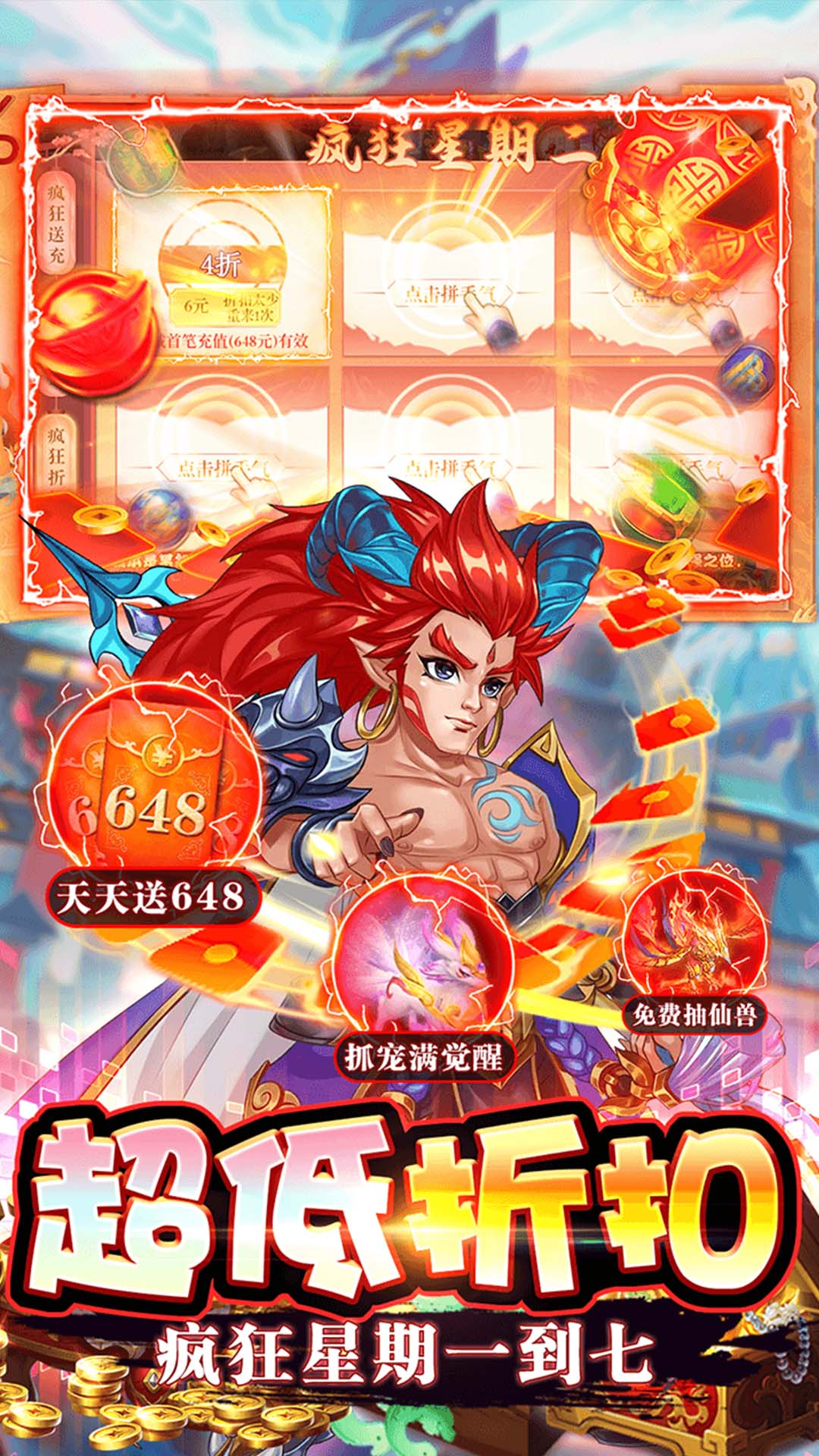 《神兽连萌(抓宠打金真回合)》全新抓宠回合制手游来啦,游戏上线就送VIP7、88w元宝、1000w银两、1000充值点,天天登录领648,每日在线送328,更有财神红包活动等你参与,轻轻松松日送千充,升级再送万元充值,更有GM工具每天保底打金2000元!海量直购免费破解,充值奖励免费拿!真回合所有神兽任你抓,无需充值也能轻轻松松升至满觉醒,让您享受最舒适的回合制乐趣!